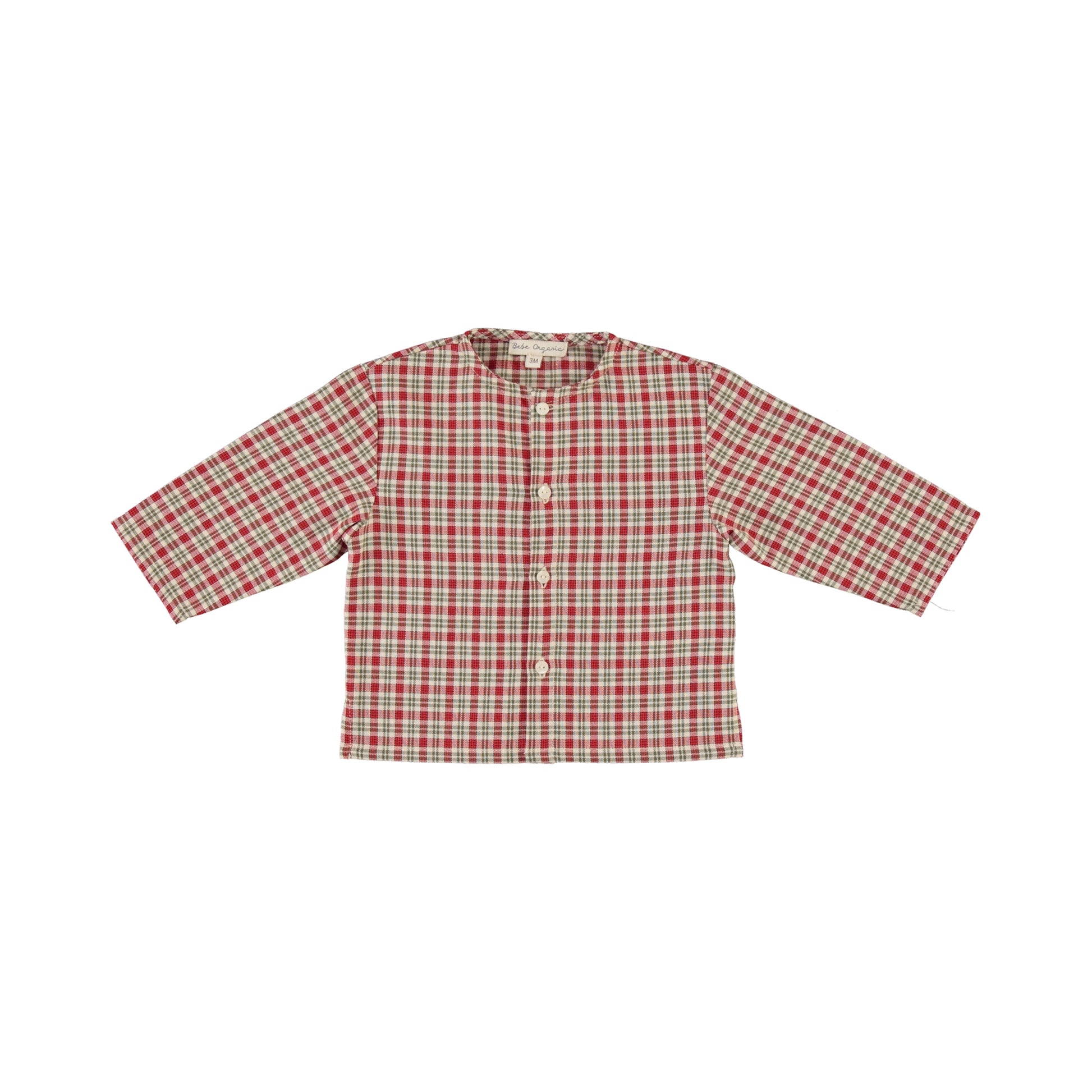 Celebrate the festivities with this adorable timeless Luka baby shirt in nostalgia check in adorable red, green and natural colours. Easy and comfortable button down loose fit shirt is made of softest organic cotton. Features front opening, round collar and long sleeves. Perfect match with Claude overall. Perfect for first Christmas celebrations and family pictures.