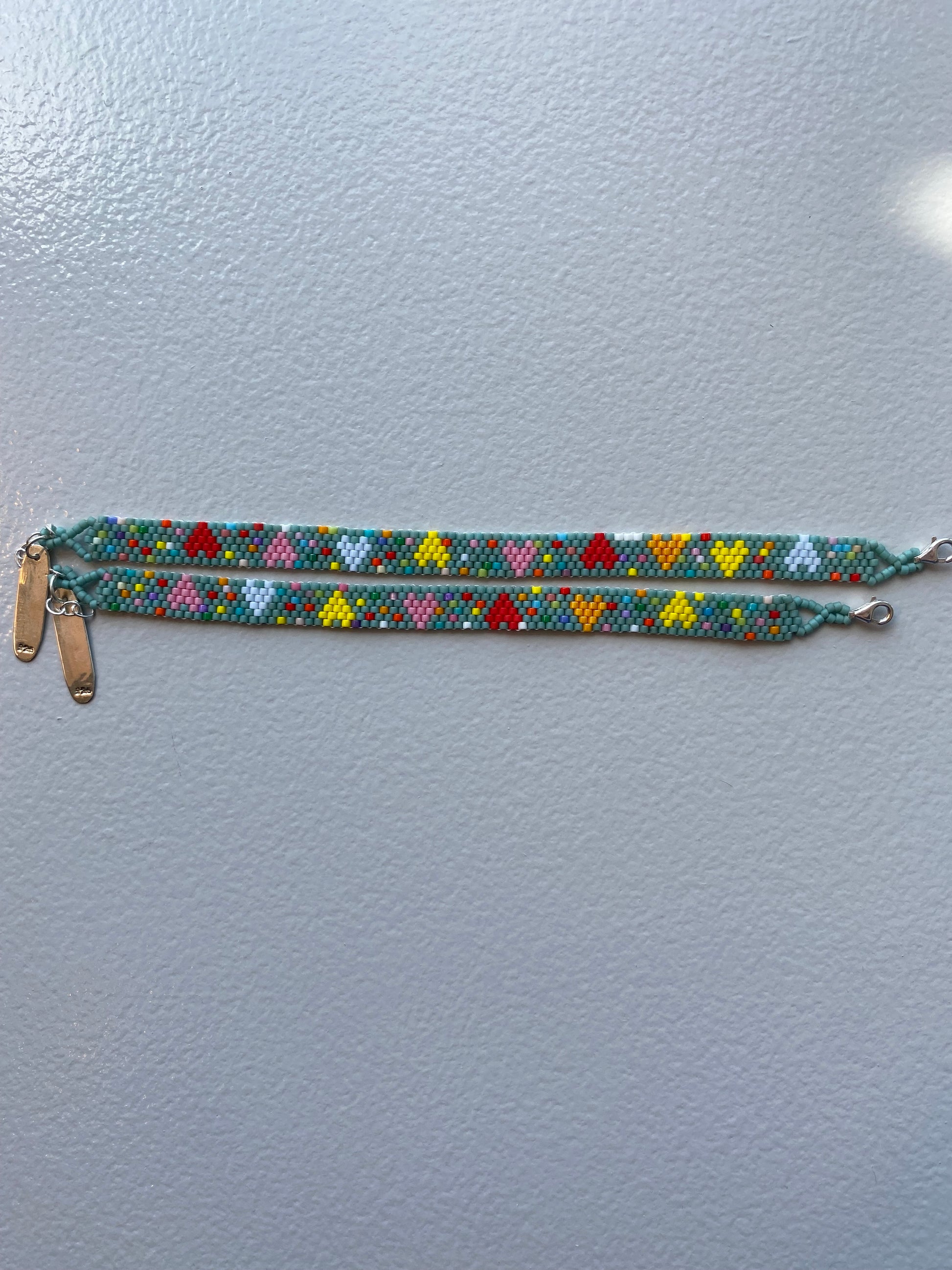 8mm wide heart stitch bracelet, created with high end glass Japanese seed beads and sterling silver clasp.