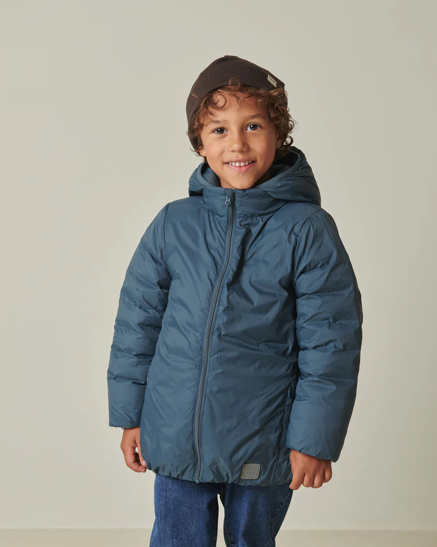 Light puffer jacket with detachable hood and pockets on both sides with an invisible zipper. The jacket closes with a zipper and has folded elastic edges on sleeves and body for a comfortable fit.